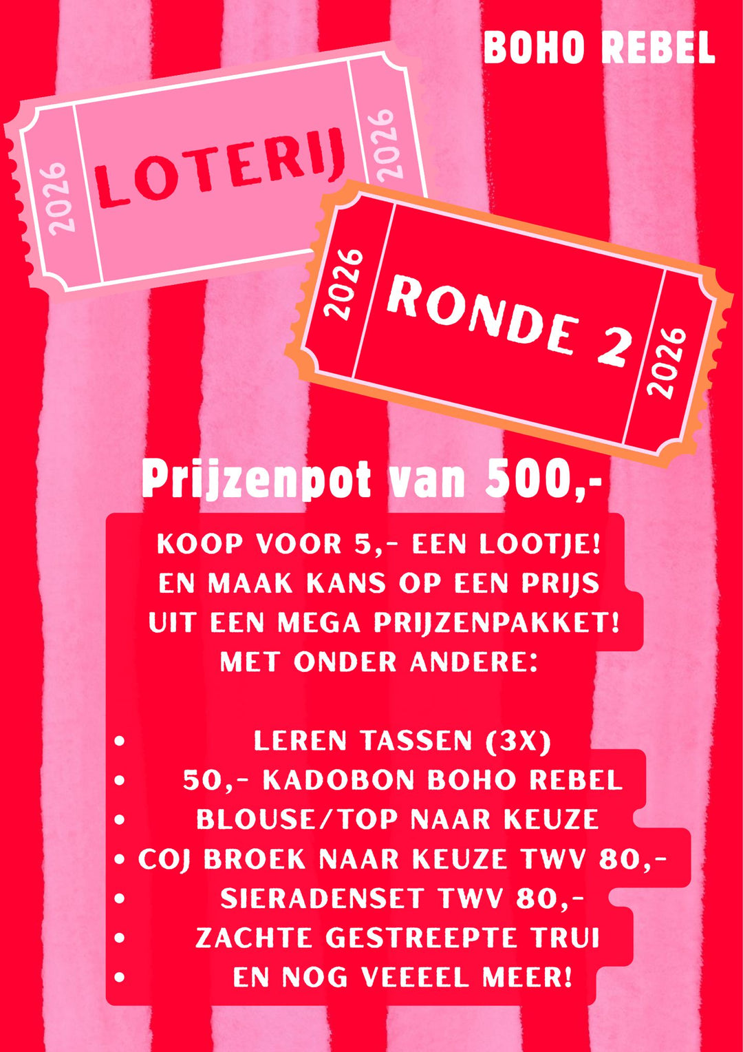 Doe mee met onze loterij met een prijzenpot van meer dan 500,-! Maak kans op prijzen tijdens onze live trekking 21 januari. Je shopt voor 5,- een lootje! Good luck Girlsss!