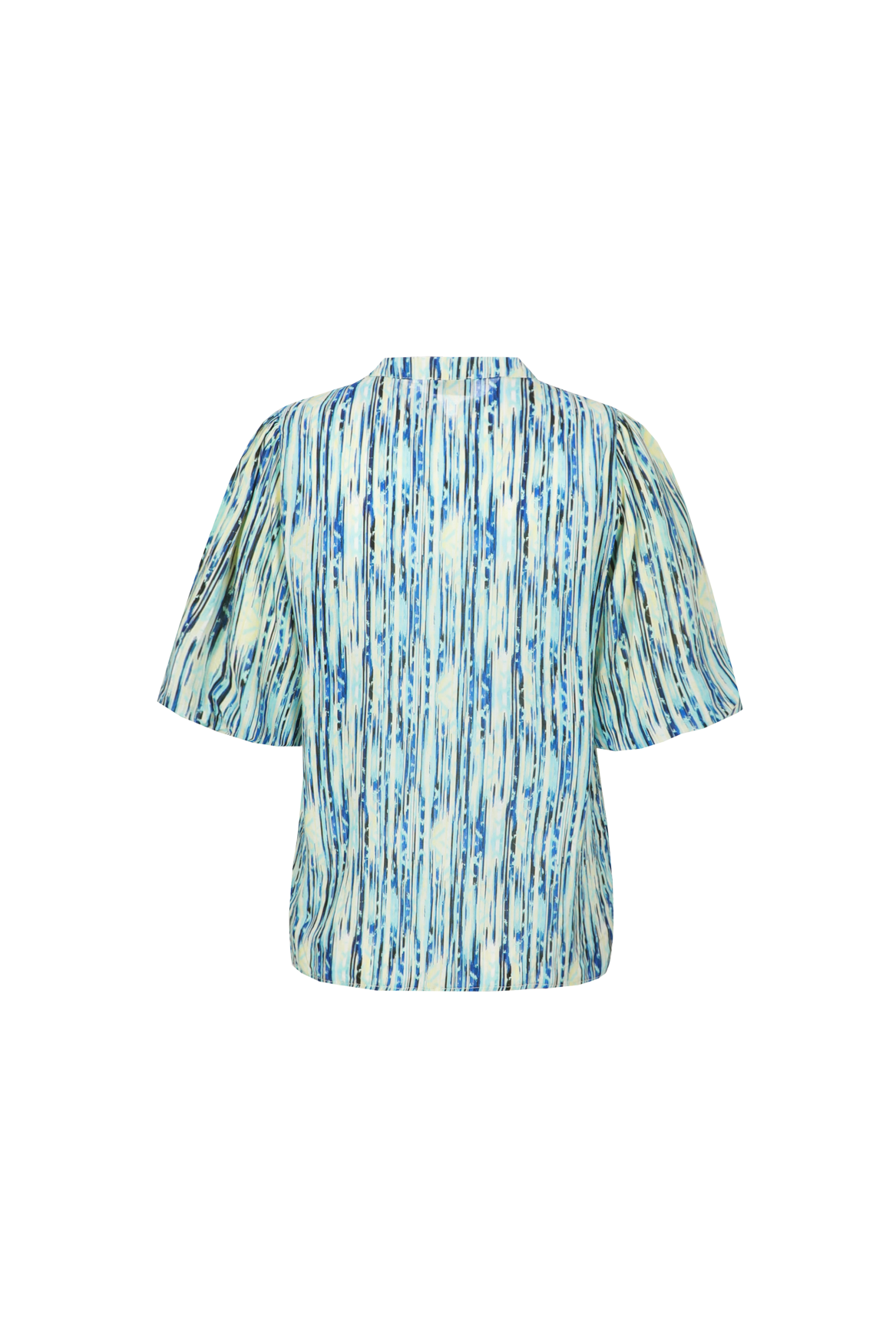 Leuke top van het merk Fluresk met een blauw/gele print. Valt op maat.