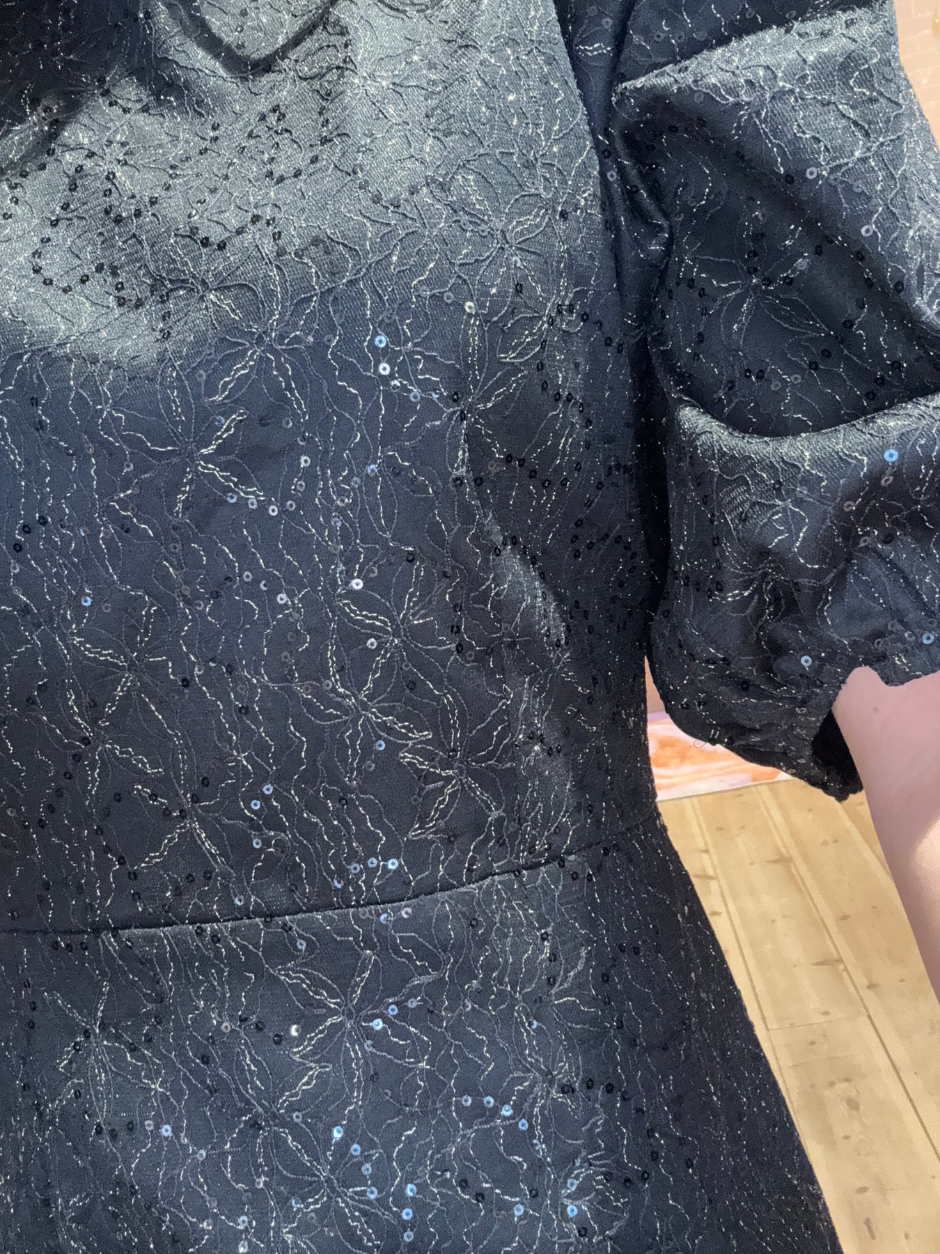 Mooie glitterstof met een patroon en pailletten, mooi op lengte en getailleerd