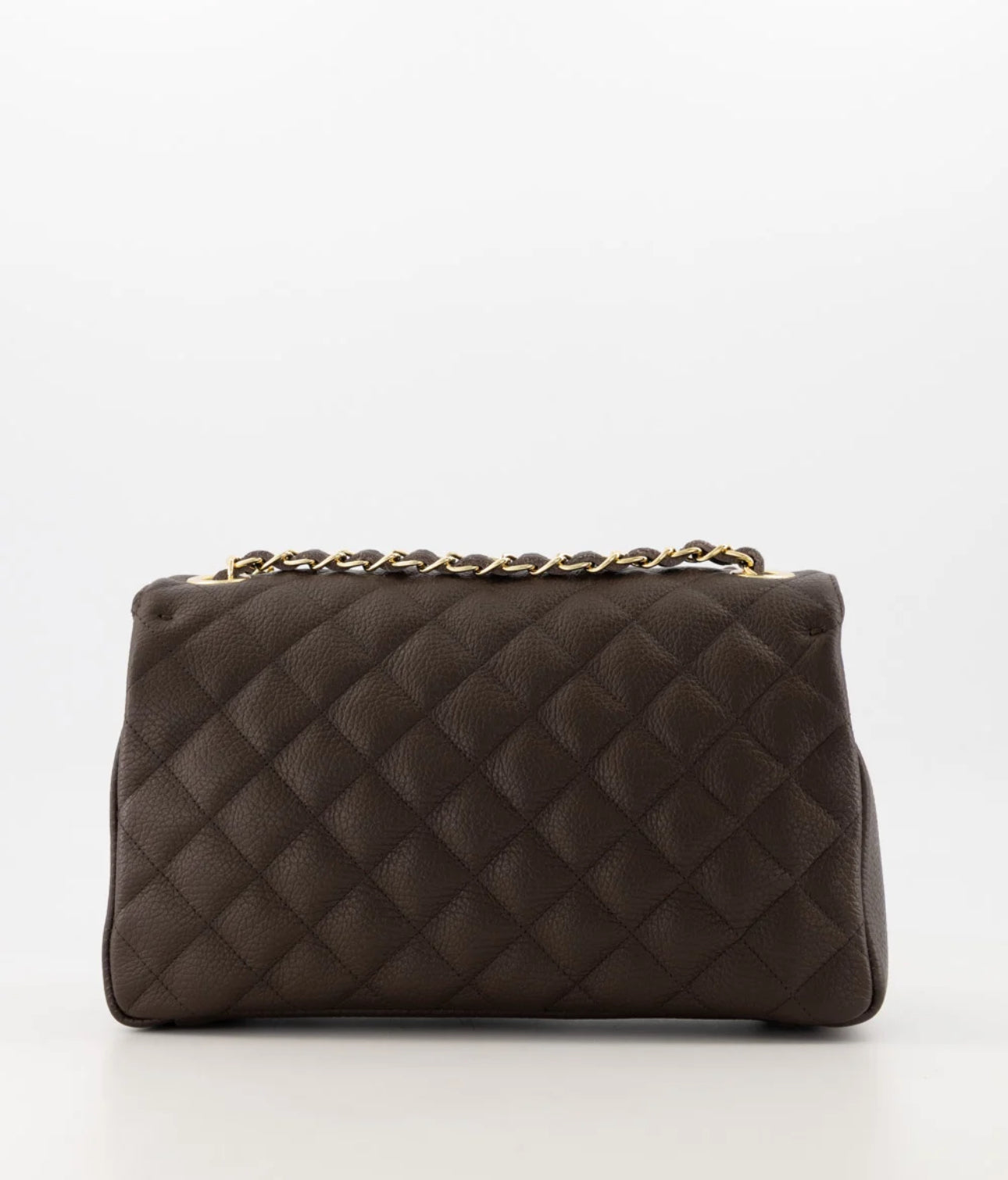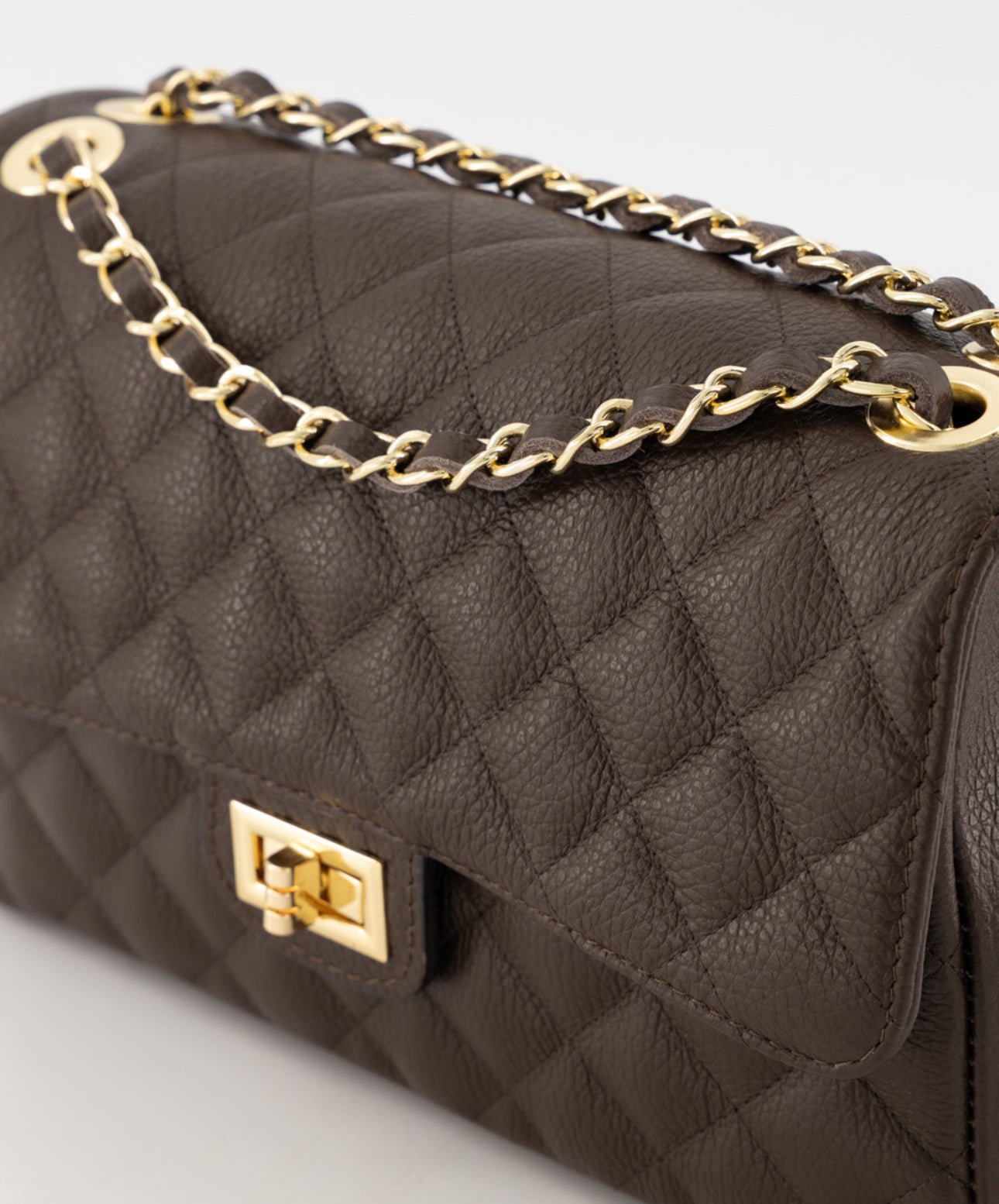 De Audrey Medium crossbody tas van classic grain leer heeft een goudkleurige kettinghengsel. De tas heeft twee grote binnenvakken en een afsluitbaar binnenvak.