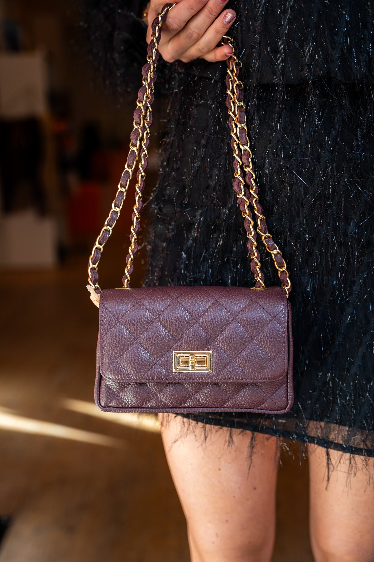 De Audrey Small crossbody tas van sauvage leer heeft een kettinghengsel. De tas heeft een binnenvak en aan de binnenzijde zit een ritsvakje.